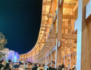 これほど巨大な木造建造物で万博会場の周りを丸く囲うという発想は、私のような凡人の頭に浮かぶことはありません。